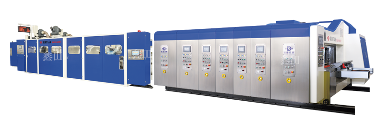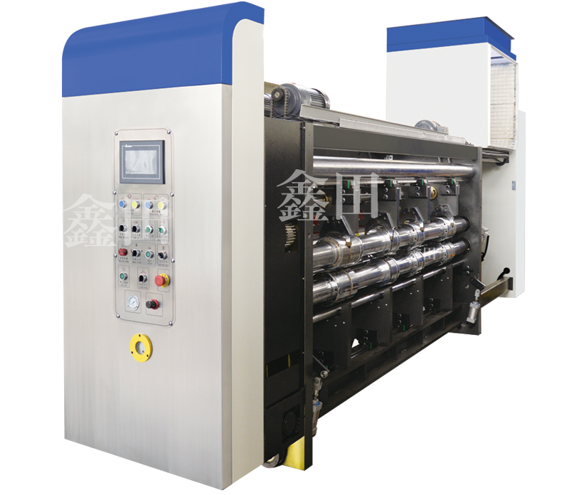 ■ 印刷单元采用真空吸附式输纸装置,确保整版面印刷效果及变形纸板输纸精度(可加装滚轮导纸和吸附同步传送结构)。